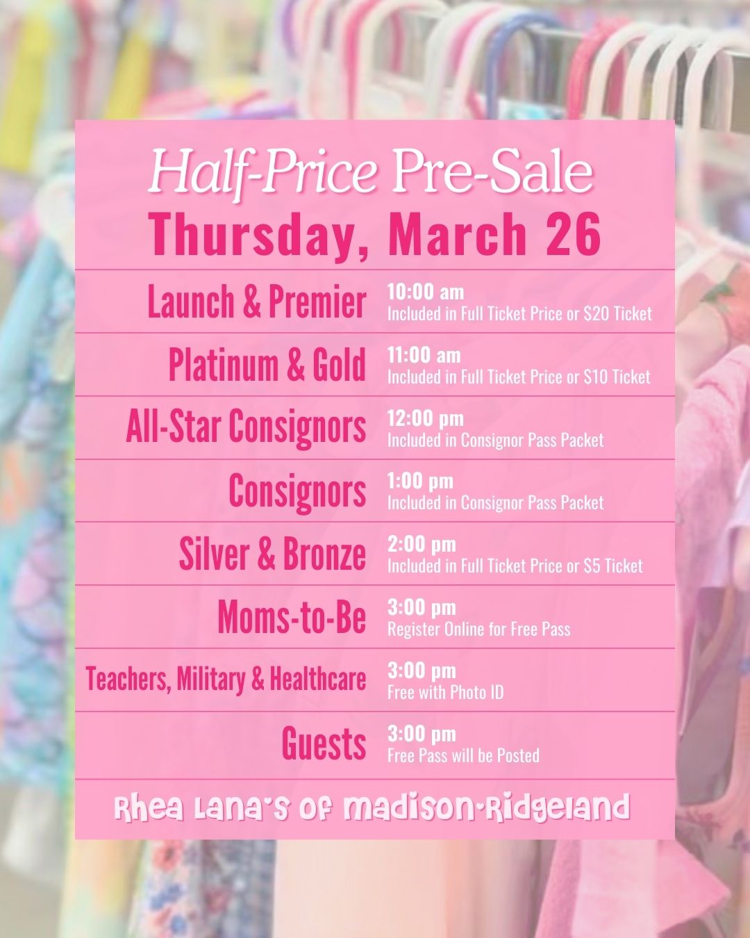 WANT TO SHOP HALF PRICE DEALS EARLY? SCREEN SHOT THE PASS BELOW OR CLICK HERE TO PURCHASE A TICKET.